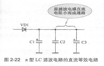 图2-22所示是π型Lc滤波电路的直流等效电路,电感L1的直流电阻小到为零,就用一根导线代替。