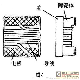 还有一种片式绕线电感是采用H型陶瓷芯,经过绕线、焊接、涂复、环氧树脂灌封等工艺制成,见图3,由于电极已预制在陶瓷芯体上,制造工艺更加简单,而且可以进一步小型化。这类电感的电感量较小,但自谐振频率高(通常为5~6GHz,最高达12.5GHz),更适合高频使用。